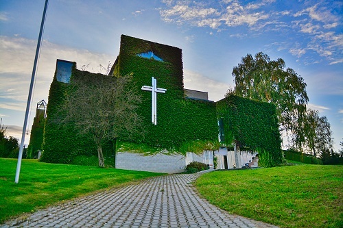 Der Sichtbeton der Kirche wird mit folgenden Worten erklärt: „Deswegen heißt es auch in der Schrift: ‚Siehe, ich lege Zion einen auserlesenen kostbaren Eckstein; wer an ihn glaubt, wird nicht zuschanden werden‘ (Jes. 28,16) Diese ‚Sichtbetonsteine‘ versinnbildlichen das Äußere des Kirchenbaus nicht mit Farbe bedeckt werden. Farbe geben müssen die einzelnen ‚Steine – die Gläubigen‘.“