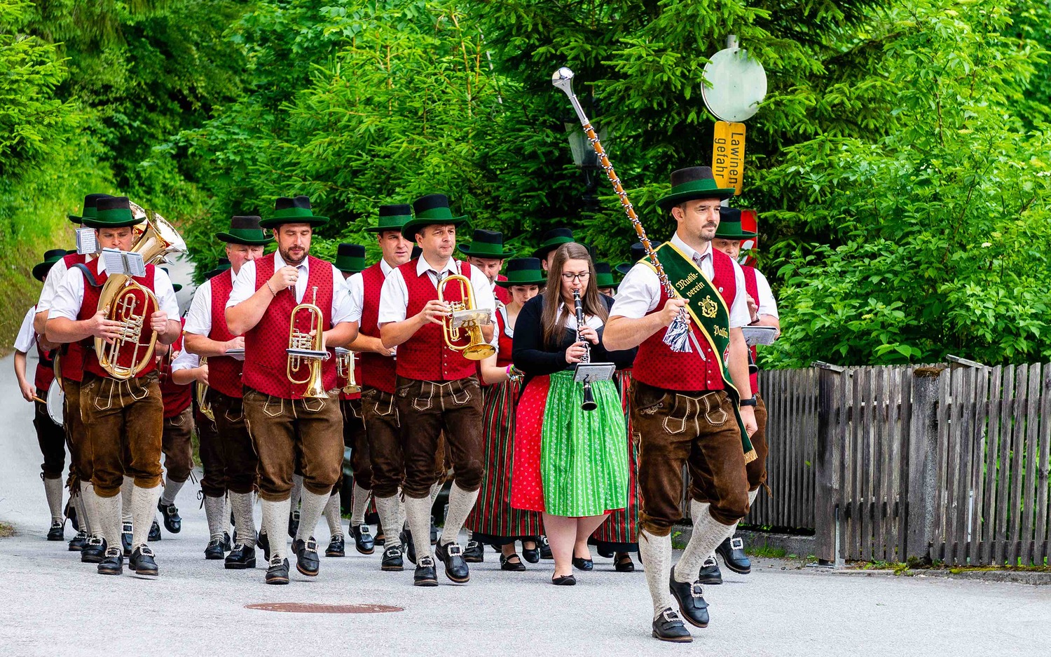 Bei wunderschönem Wetter wurde gemeinsam am 20.06.2019 um 08:00 Uhr das Fronleichnamsfest in der Pfarrkirche Palfau gefeiert. Die Messe wurde von der Musikkapelle Palfau feierlich umrahmt. Gestartet wurde mit einer gemeinsamen Festmesse in der Pfarrkirche, wo sich auch der 1. Altar befand. Angeführt vom Kreuzträger, der Musikkapelle, den Statuenträgern, viele Fahnenträgern, Pater Engelbert, den Ministranten, Laternen- und Himmelträgern zog die Prozession zum 2. Altar, der sich bei der Rinntaverne (Fam. Pechhacker) befand. Der 3. Altar war beim Holzknechtkreuz und der 4. Altar beim Kriegerdenkmal. Ein herzliches Dankeschön gilt Pater Engelbert für die feierliche Prozession und der Musikkapelle für die feierliche Umrahmung. Vielen Dank an ca. 20 Kinder aus Palfau, die mit Fahnen und Statuen das Fronleichnamsfest sehr bereichert haben. Danke an alle die beim Kirchenschmücken, beim Herrichten der wunderschön geschmückten Altäre mitgeholfen haben und an alle Mitwirkenden.
